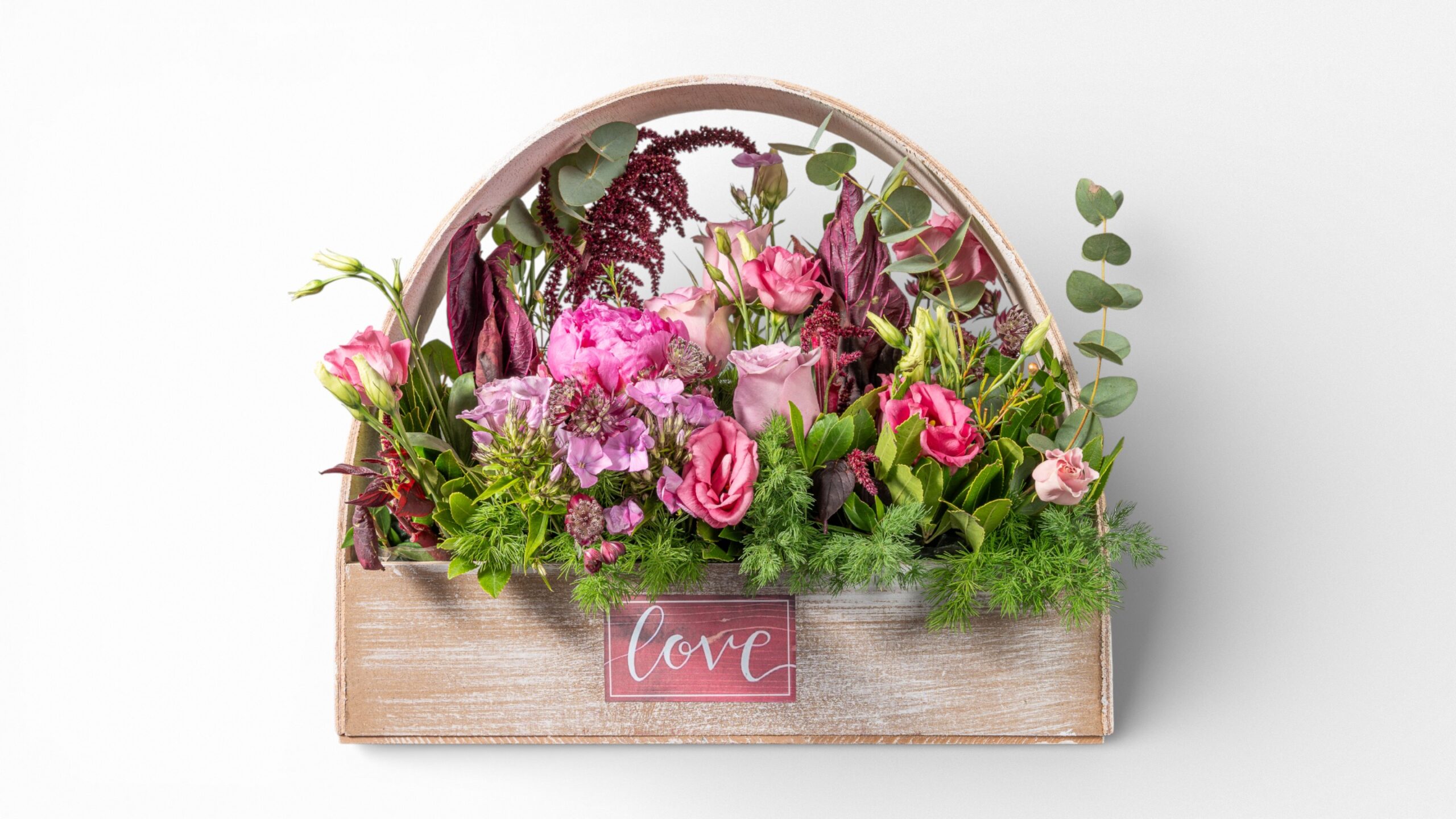 Σύνθεση λουλουδιών σε ξύλινη βάση