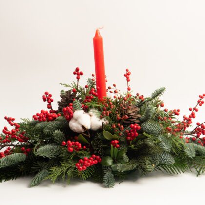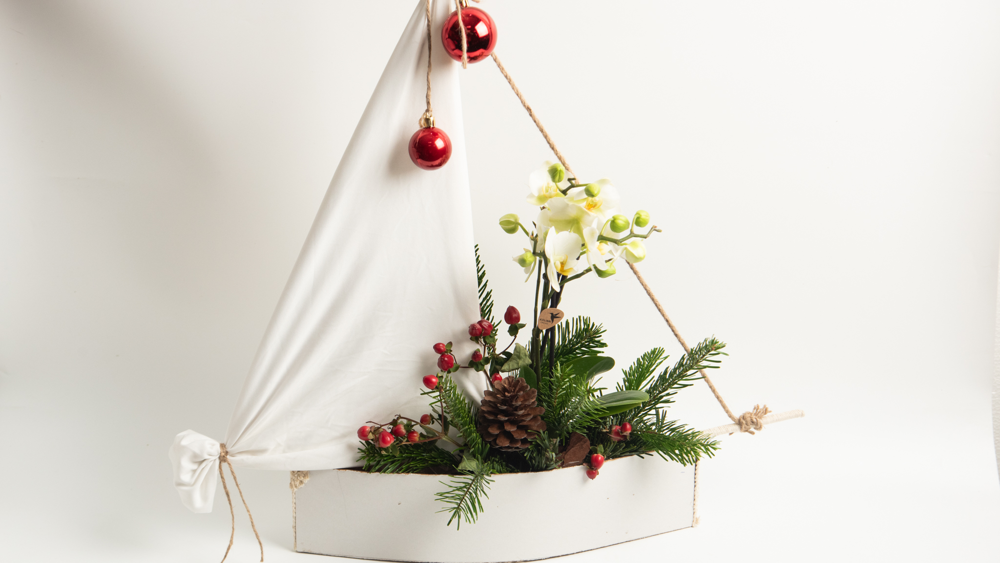 Καράβι με mini φυτό ορχιδέας και Χριστουγεννιάτικες πρασινάδες
