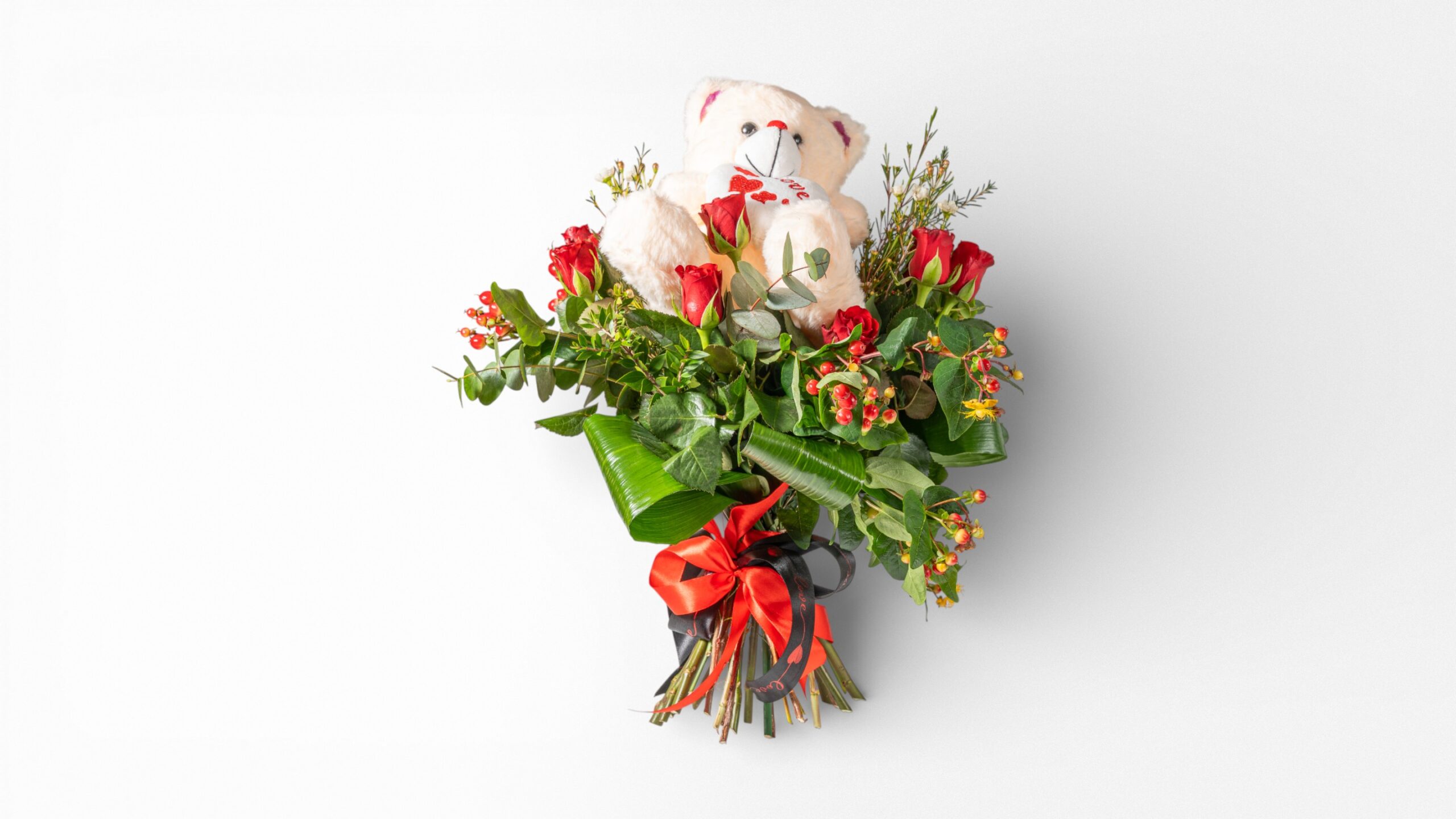 Μπουκέτο με τριαντάφυλλα και λούτρινο αρκουδάκι