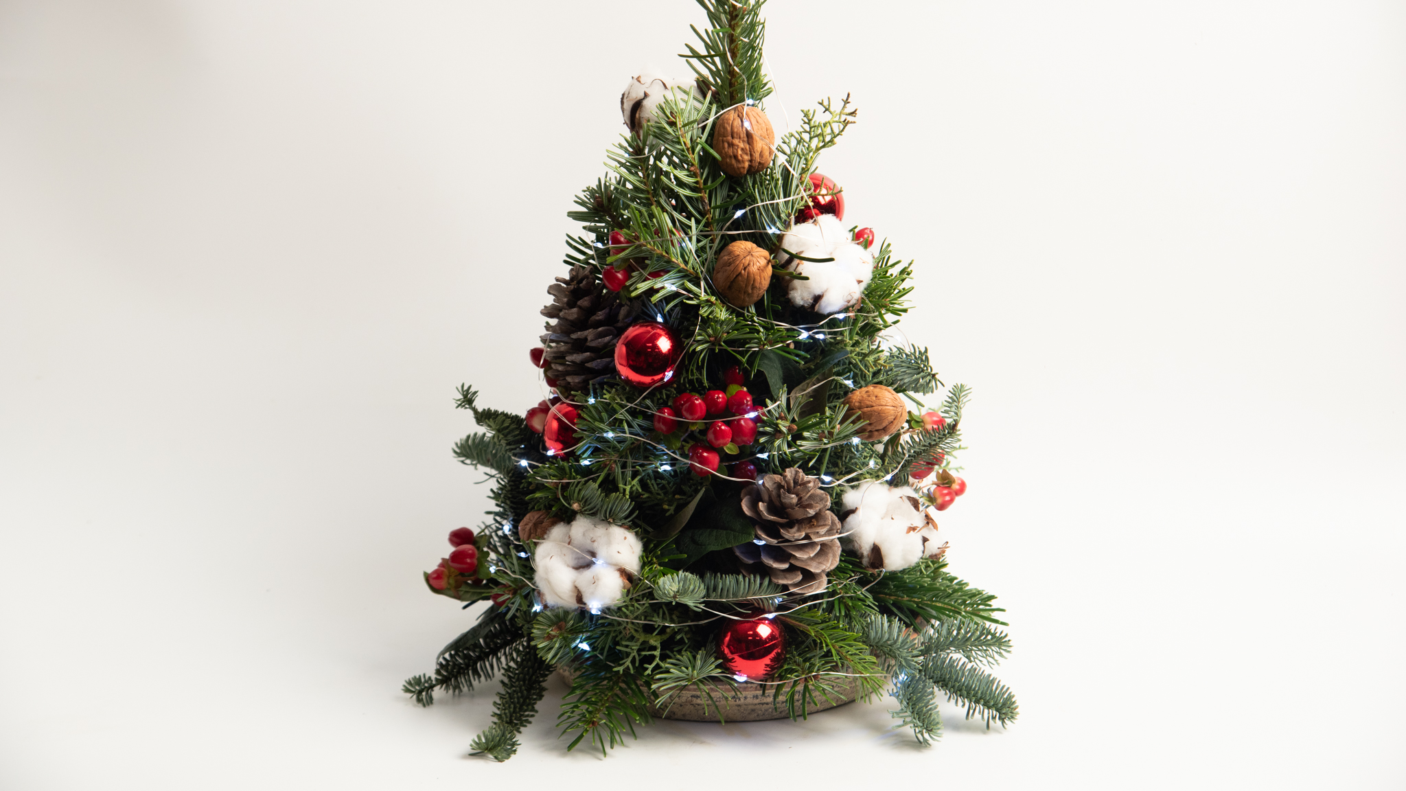 Σύνθεση-Χριστουγεννιάτικο δέντρο με λαμπάκια και στολίδια